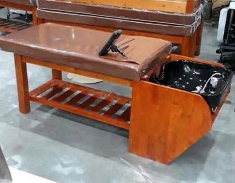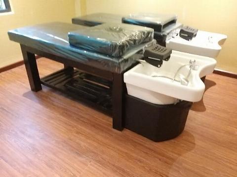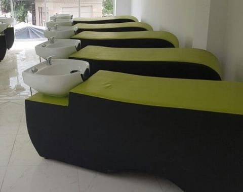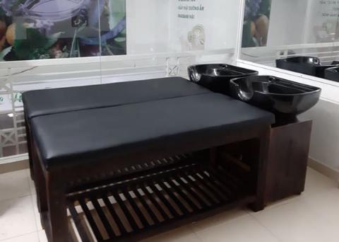 Ghế gội đầu ngồi bọc da nệm mút – Tạo cảm giác thoải mái, sang trọng hơn cho khách hàng.