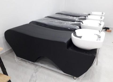 Ghế gội đầu ngồi bọc da nệm mút – Tạo cảm giác thoải mái, sang trọng hơn cho khách hàng.