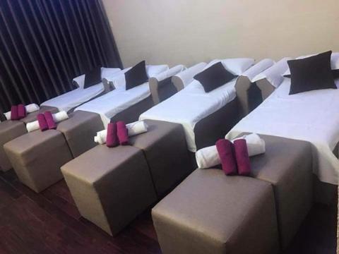 Ngoài ra, độ dày và chất lượng nệm cũng rất quan trọng. Nệm nên dày từ 8–10 cm, đàn hồi tốt, không bị xẹp lún sau thời gian sử dụng. Một số giường còn có thể điều chỉnh độ nghiêng phần lưng để phục vụ cho các dịch vụ như chăm sóc da, trị liệu chuyên sâu.