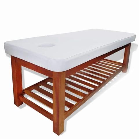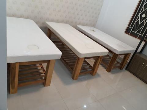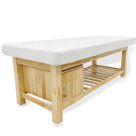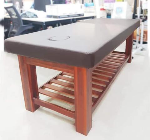 Đây là loại giường phổ biến nhất hiện nay, khung làm từ gỗ thông tự nhiên chắc chắn, nệm dày êm, bọc da simili dễ vệ sinh. Thường dùng cho spa dưỡng sinh, massage body, chăm sóc da cơ bản.